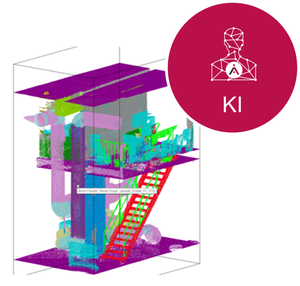 Die 3D-Scandaten werden durch die aurivus KI mit Leben/Informationen befüllt. Unser neuronales Netz analysiert die 3D-Aufnahme und findet komplexe Objekte und deren Parameter.